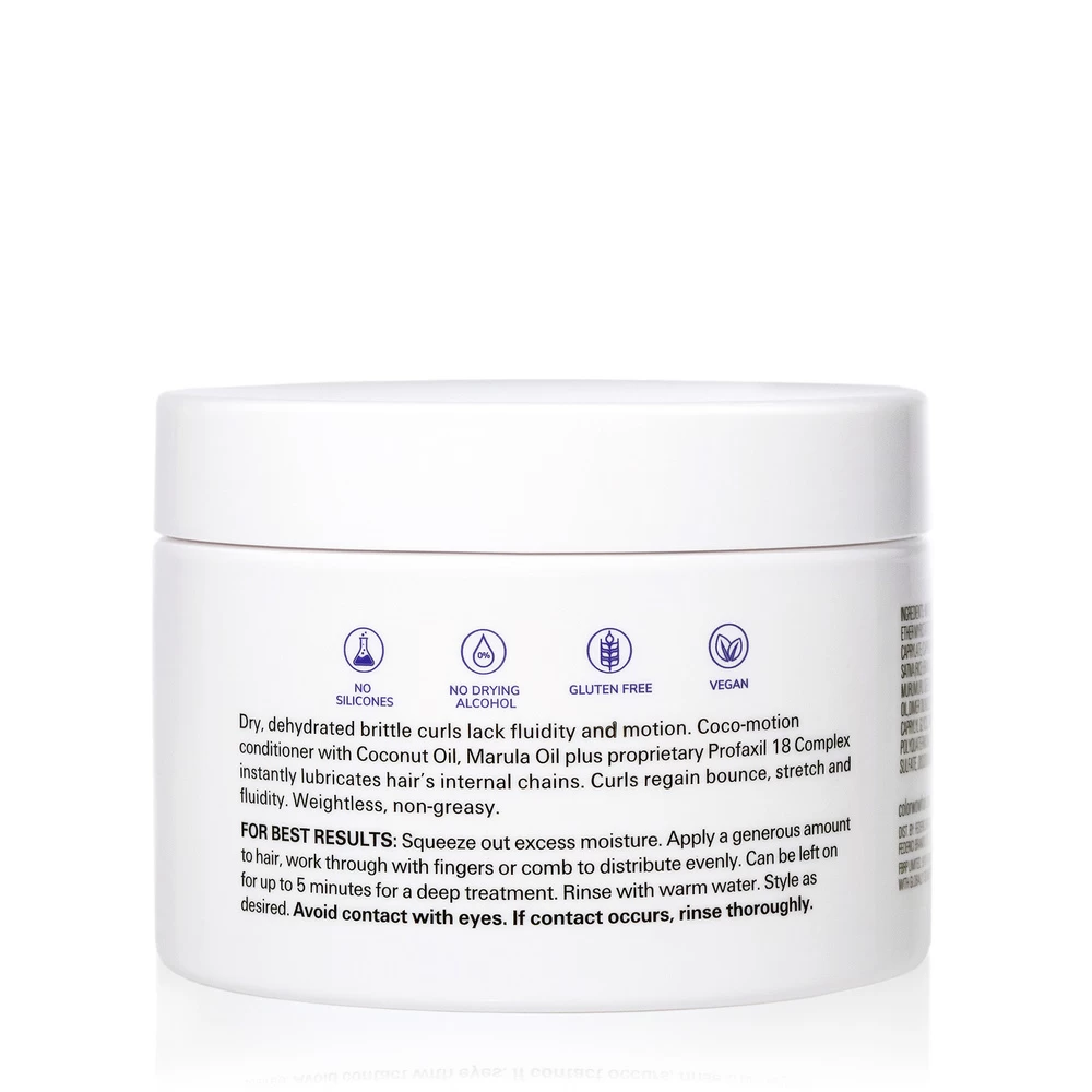 Contient le complexe Profaxil-18™ qui va briser les particules d’huile de marula et d’huile de coco pour permettre au produit de pénétrer plus en profondeur dans le cheveu puis de sceller l’hydratation de l’intérieur pour éviter le fini gras et l’allourdissement. On peut également parler de la « Naked Technology »™ : la boucle est hydratée et légère, comme s’il n’y avait pas de produit. Redonne de l’élasticité et re-forme les
