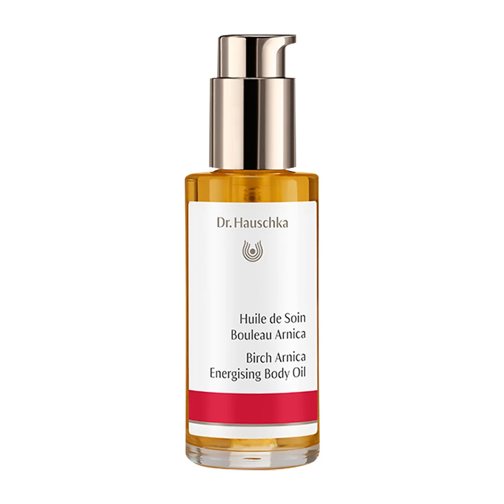 Après le sport ou le sauna, ce soin revitalisant sera apprécié de tous. L’Huile de Soin Bouleau Arnica libère un parfum mentholé-citronné rafraîchissant tandis que l’huile de jojoba maintient l’hydratation de la peau qui devient douce et souple. Sa composition à base d’extraits de plantes médicinales active le métabolisme et stimule la circulation sanguine de la peau. Elle réchauffe les muscles courbaturés et les membres fatigués. Les ingrédients qui composent cette huile de soin renforcent les fonctions de la peau. L’arnica et les feuilles de bouleau, la racine de bardane et l’ortie, aux vertus revitalisantes, sont mélangées pendant une semaine à de l’huile de tournesol de culture biologique, pour arriver à maturation selon un procédé rythmique bien défini. Dans cette phase, la préparation est