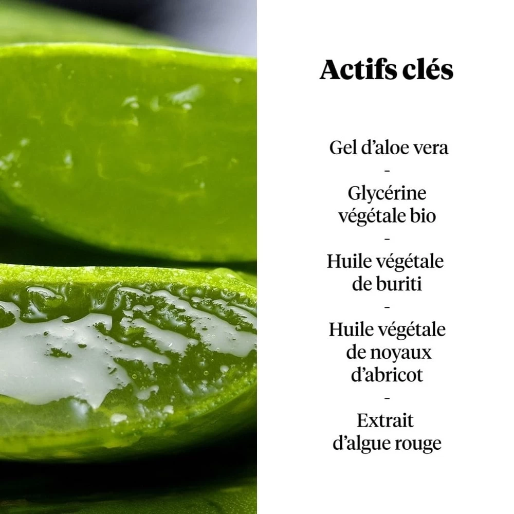 – Gel d’aloe vera : apaisant, hydratant et régénérant,