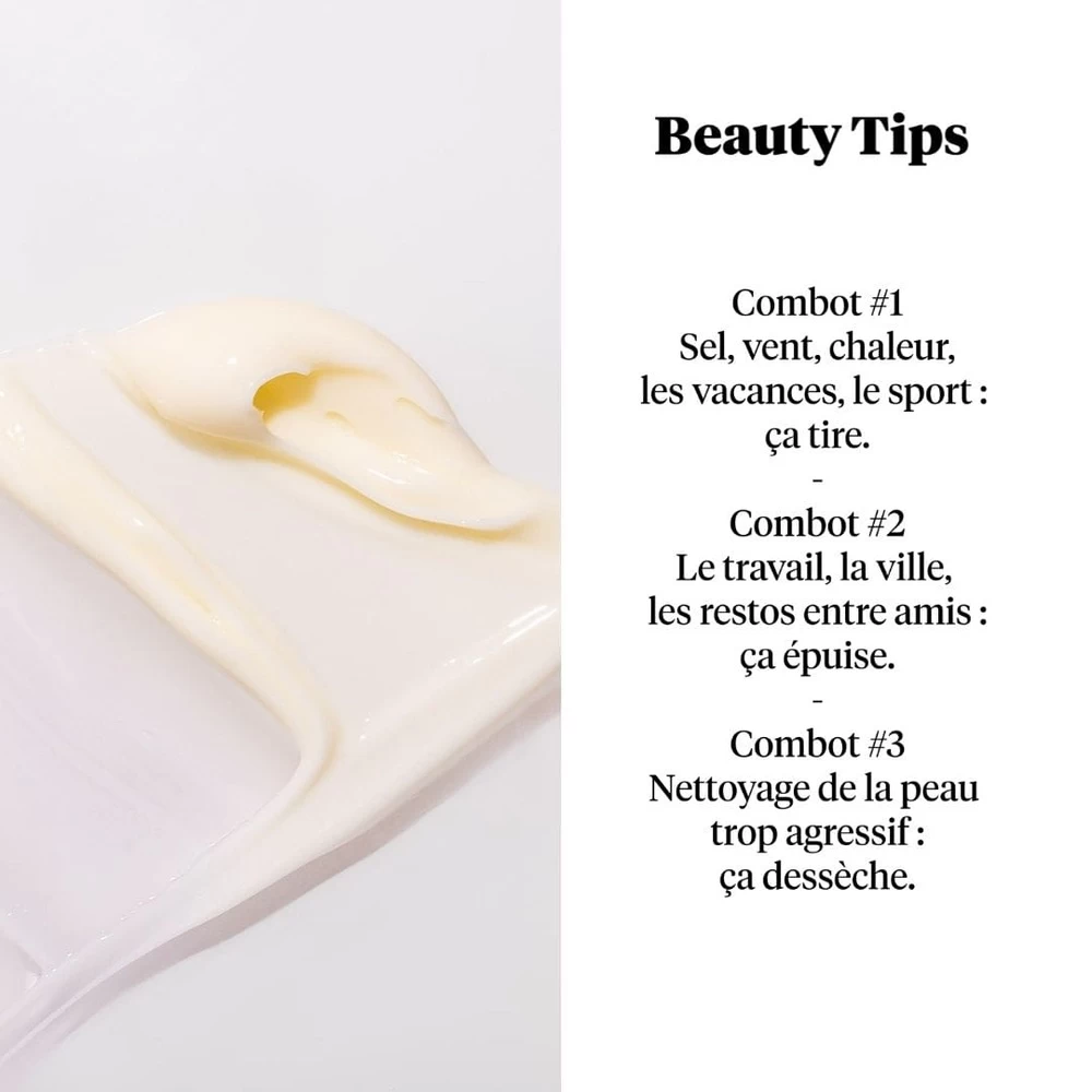 Sa consistance naturellement gélifiée permet de soulager les tiraillements, envelopper la peau, lisser les traits fatigués sans laisser de film gras ou épais.