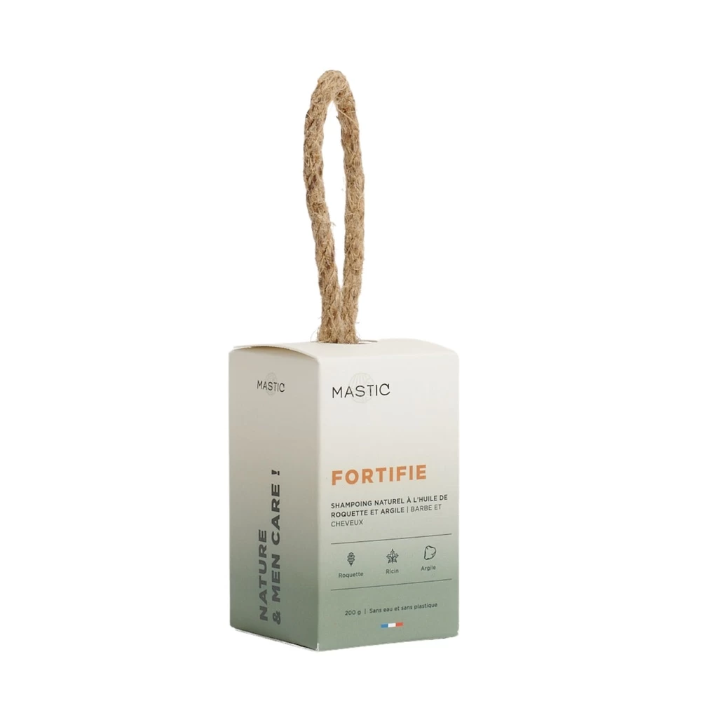 Un shampoing solide fortifiant la barbe et les cheveux tout en les nourrissant, en une formule minimaliste.