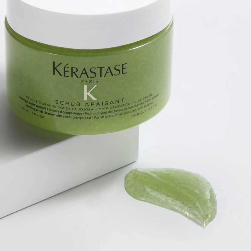 Fusio Scrub Apaisant de Kérastase est un gommage apaisant qui nettoie en douceur et apaise les cheveux et le cuir chevelu. Sa formule efficace a été spécialement développée pour les cuir chevelus sensibles sujets aux pellicules. Elle contient des ingrédients actifs raffinés tels que le jojoba, le madécassoside, le zeste d’orange douce et la vitamine B5. Le jojoba soigne le cuir chevelu via un nettoyage intensif et favorise la pousse des cheveux. La vitamine B5 renforce la santé des cheveux et du cuir chevelu. Les madécassosides ont un effet anti-inflammatoire. Le zeste d’orange rétablit léclat des cheveux. Gommage apaisant pour un cuir chevelu sain et des cheveux revitalisés et soyeuxFusio Scrub Apaisant de Kérastase offre aux cheveux et au cuir chevelu un nettoyage intensif et des soins choyants. Le gommage doux combat de manière ciblée les pellicules et libère les cheveux et le cuir chevelu des saletés, des impuretés, du sébum et d’autres résidus. Il libère les pores, active la micro