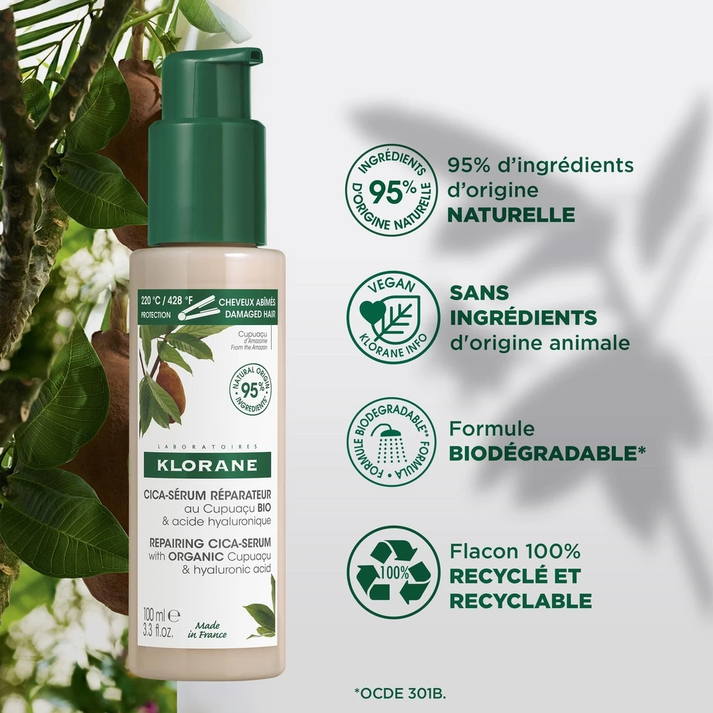 Klorane — Cica-sérum Réparateur au Cupuaçu BIO & acide hyaluronique — Cheveux tr ès secs, abîmés 100 ml