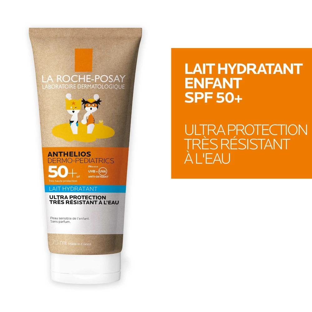 Une crème solaire très haute protection à large spectre contre les UVA/UVB enrichie en Eau Thermale de La Roche-Posay pour enfants.