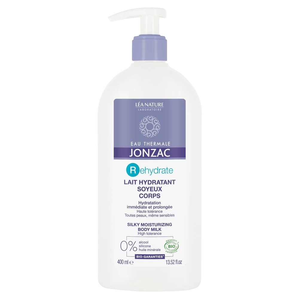 Le lait hydratant soyeux corps Rehydrate protège et hydrate* durablement. Sa formule légère et lactée pénètre rapidement pour un effet fraîcheur immédiat. Jour après jour, la peau est plus douce et confortable.Haute toléranceToutes peaux, même sensiblesNon comédogèneConvient aux vegansFormulé avec : 15% Eau thermale de Jonzac, Glycérine d’origine naturelle reconnue hydratante*, Esters d’acides gras*Hydratation des couches supérieures de l’épiderme.Testé sous contrôle dermatologique.Formulé pour minimiser les risques de réactions allergiques.Contenance : Tube de 400 ml