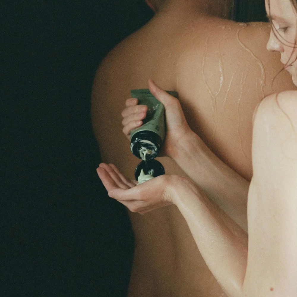 Gommage doux pour le corps certifié naturel, pour une peau douce de la tête aux pieds.