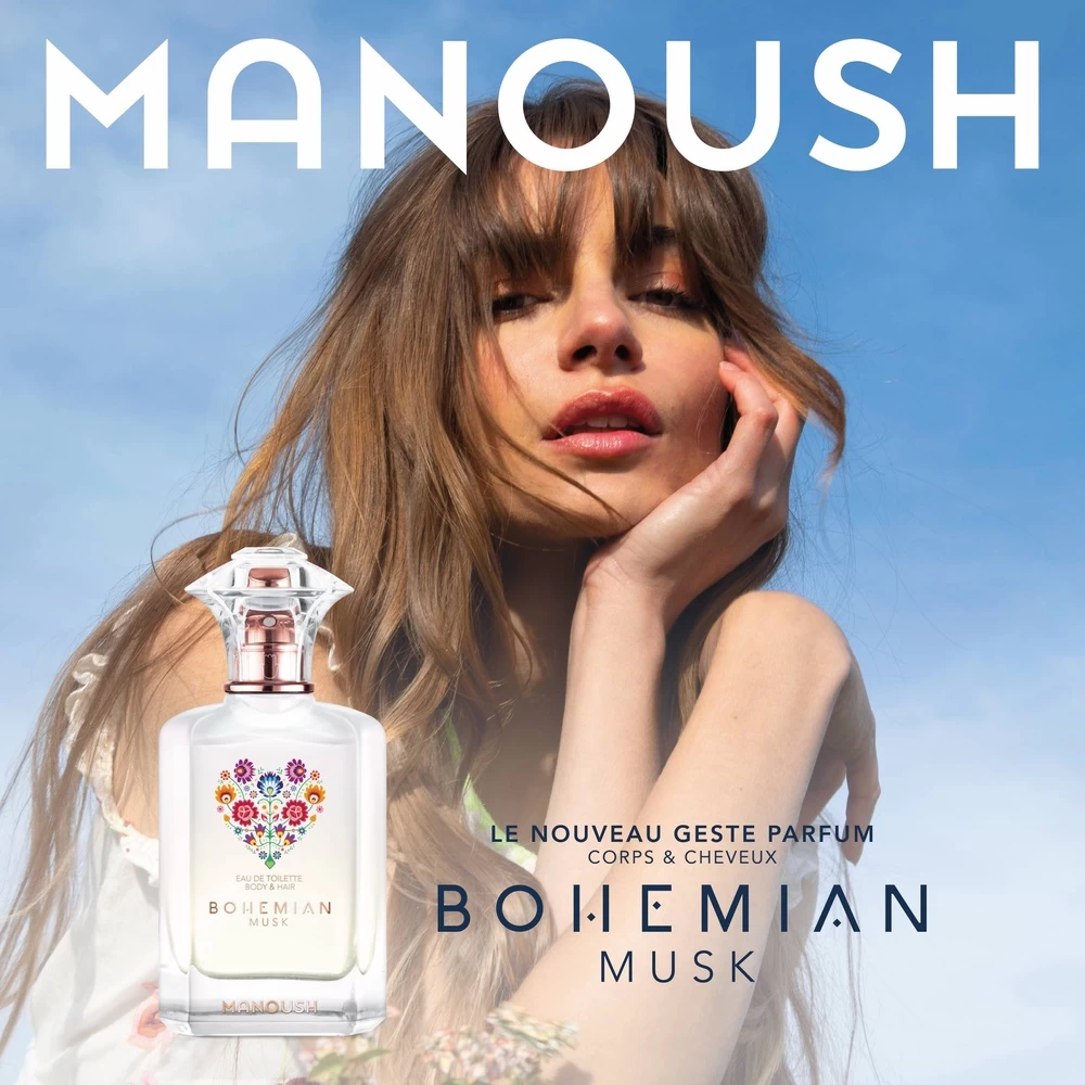 Avec BOHEMIAN MUSK, MANOUSH Parfums a cre´e´ un ve´ritable cocon de bien-e^tre, de´licat, subtil mais de´finitivement addictif et dans lequel vous aurez envie de vous envelopper encore et encore.