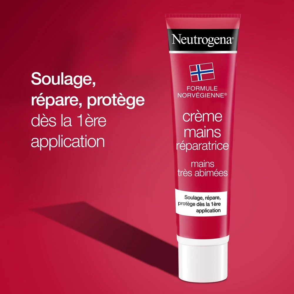 La Crème mains réparatrice de Neutrogena® apaise et répare les mains très abîmées, fissurées ou crevassées.