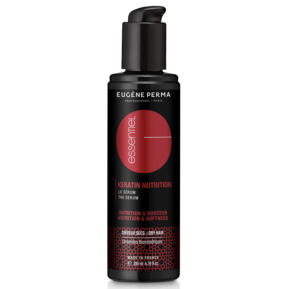 Le Sérum Keratin Nutrition ESSENTIEL d’EUGENE PERMA Professionnel est un soin sans rinçage apportant une résistance face aux agressions extérieures. Il nourrit, discipline les cheveux, tout en leur apportant de la brillance. Il facilite le démêlage sans effet alourdissant.