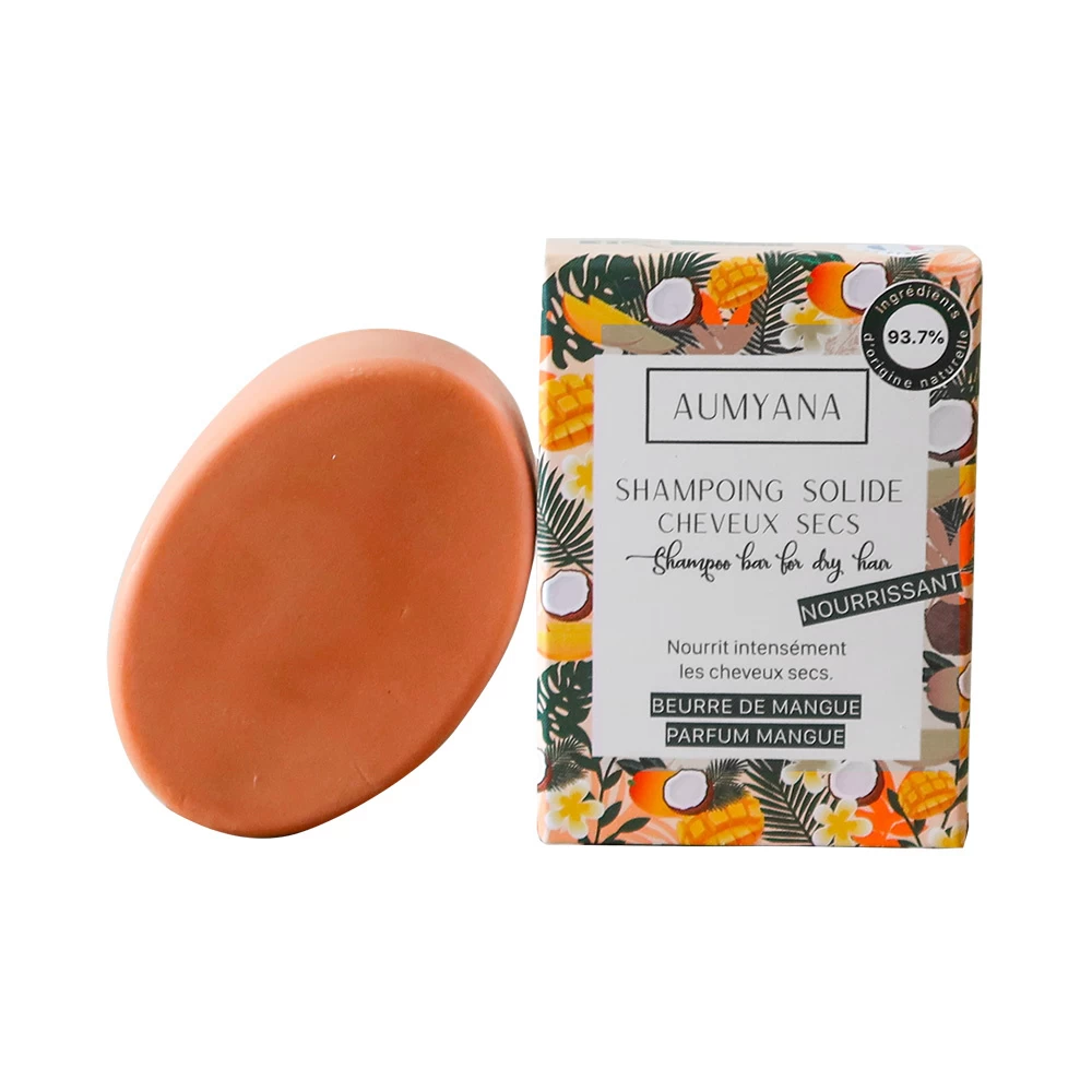 Shampoing solide naturel au beurre de mangue et à l’huile de coco bio pour des cheveux intensément nourris. Il nettoie sans agresser le cuir chevelu et sans alourdir les cheveux. Parfum mangue 100% naturel. Son petit + : mousse généreuse garantie.