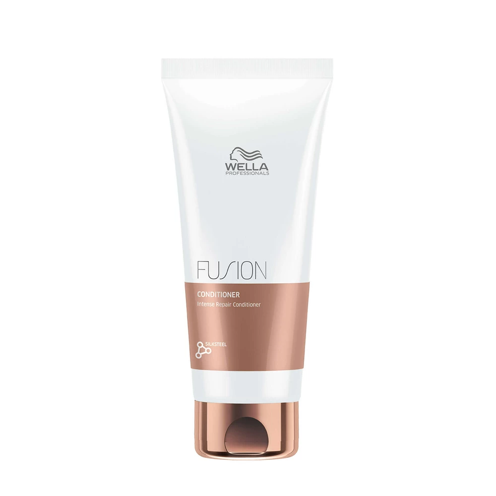 Fusion Conditionneur Intense Repair réparation intense. Pour des cheveux plus lisses et plus résistants. Protège les cheveux contre les agressions extérieures et la casse due au coiffage. Conditionneur Wella Fusion à base d’acides aminés de soie.